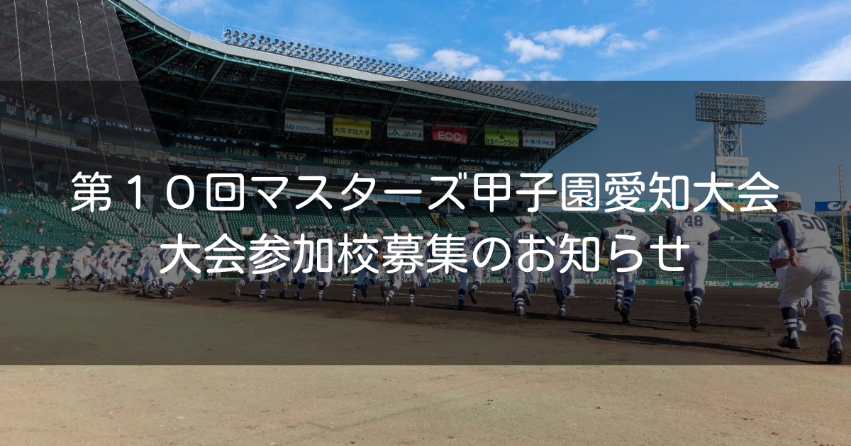 大会概要 大会名 マスターズ甲子園2024 会期 令和6年11月9日(土)、10日(日) 会場 阪神甲子園球場 出場校 愛知県選抜 11月9日(土)阪神甲子園球場【出場選手】【試合詳細】 試合動画 壮 ...