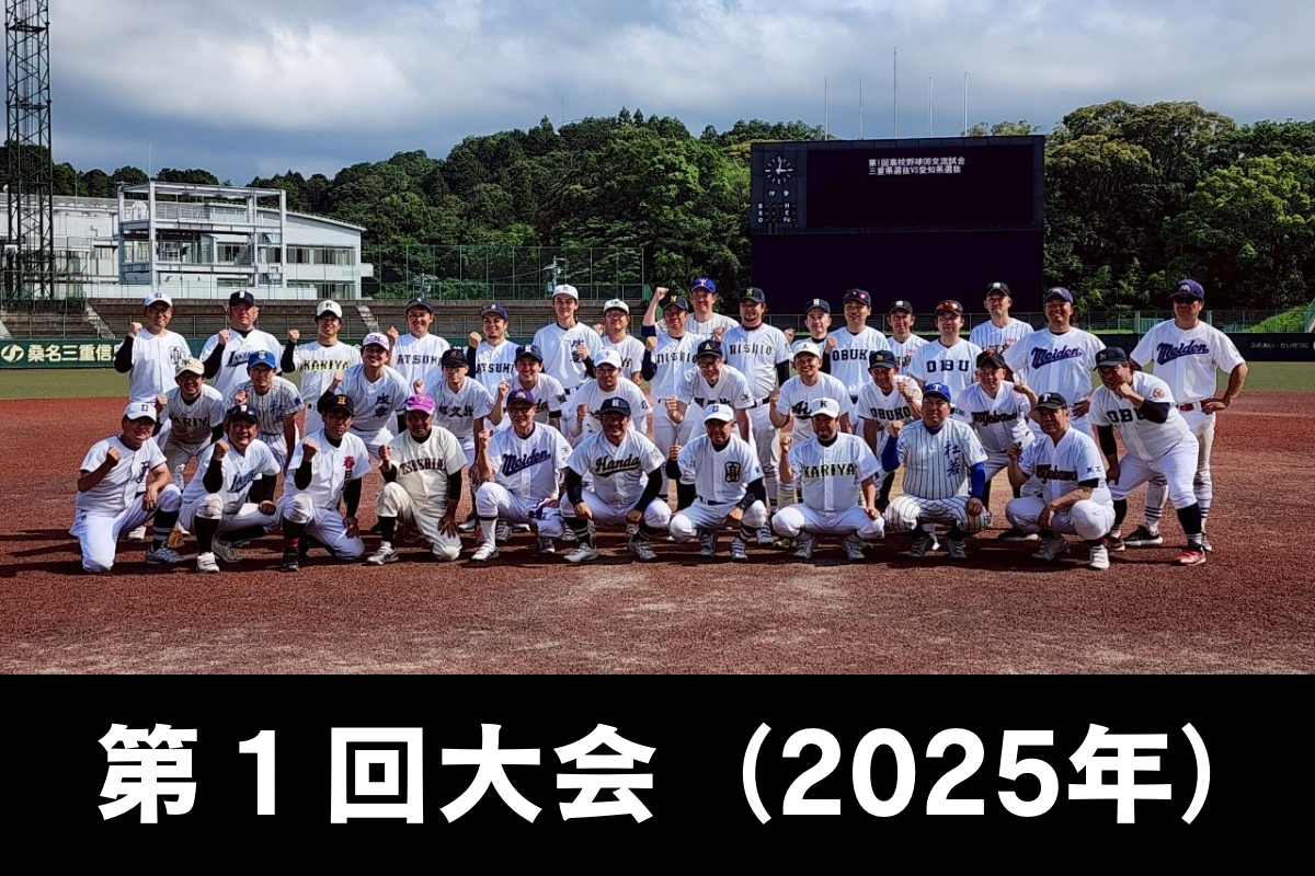 HOME >高校野球OB交流試合高校野球OB交流試合は、愛知県選抜と三重県選抜による高校野球OBの対抗戦です。2025年に第1回大会が開催され、地域を越えた新たな交流の場としてスタートしました。本試合は、高校野球OBの振興と発展を図り、野球文化のさらなる発展に寄与するとともに、各連盟相互の親睦と発展を深めることを目的としています。過去の大会 2026年4月1日 author