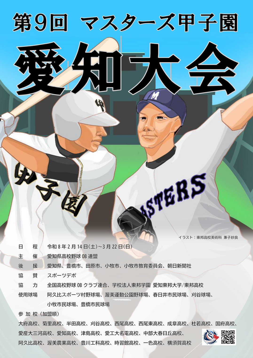 2026年2月開催の第9回マスターズ甲子園愛知大会のポスターが完成しました。